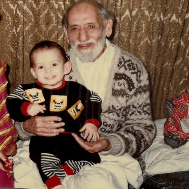 Doctor Saeed Ahmad with great grandson Muneeb Sadiq on his lap.