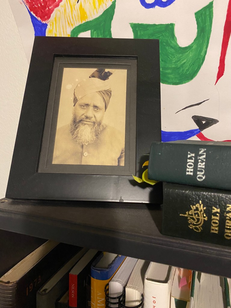 57. Pictured above is a note bearing Doctor Saeed Ahmad’s own handwriting—the note appears inside a copy of Hazrat Mirza Sahib’s book titled The Teachings of Islam—and is addressed to his grandson, Mujahid Ahmad Saeed, being a personal note of encouragement on his expressing the intent of computerizing the literature of the Ahmadiyya Movement.