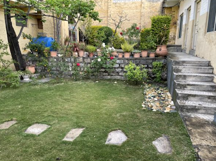 19. Around the fountain—now overflowing with the lushness of a variety of native grasses—there used to be a cemented pool of the same shape. In summers, the biographer (my aunt Safia Saeed) further related to me, the household children had a lot of fun, enjoying the sprinkles of water splashing from the fountain. It has been kept neat and clean to this day. On the request of my uncle, Muhammad Saeed, the place was opened for them. There are beds in all three bedrooms, and some utensils in the kitchen. Most likely, it’s currently being used as a guest-house. (Previously, it had been put to use as the residence for an employee of lower grade and had been in rather bad shape.)